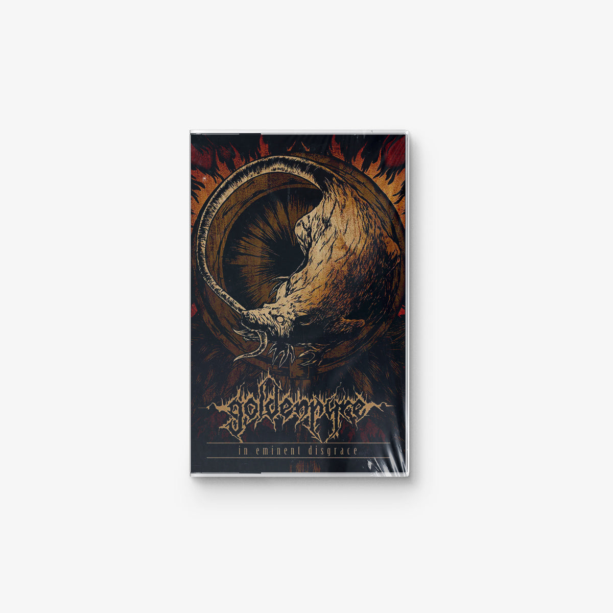 Bleak and unflinching, 'In Eminent Disgrace' strips the genre to its rawest core, exposing the rot beneath. Goldenpyre summon a sonic bulldozer of distortion and despair, their songs built on massive riffs, cavernous vocals, and an atmosphere of total desolation. It’s an album that rejects faith, purity, and redemption—thriving instead in the filth and disillusion of existence. 'In Eminent Disgrace' stands as a brutal declaration from one of Portugal’s most savage death metal acts: believe in nothing, feel everything.