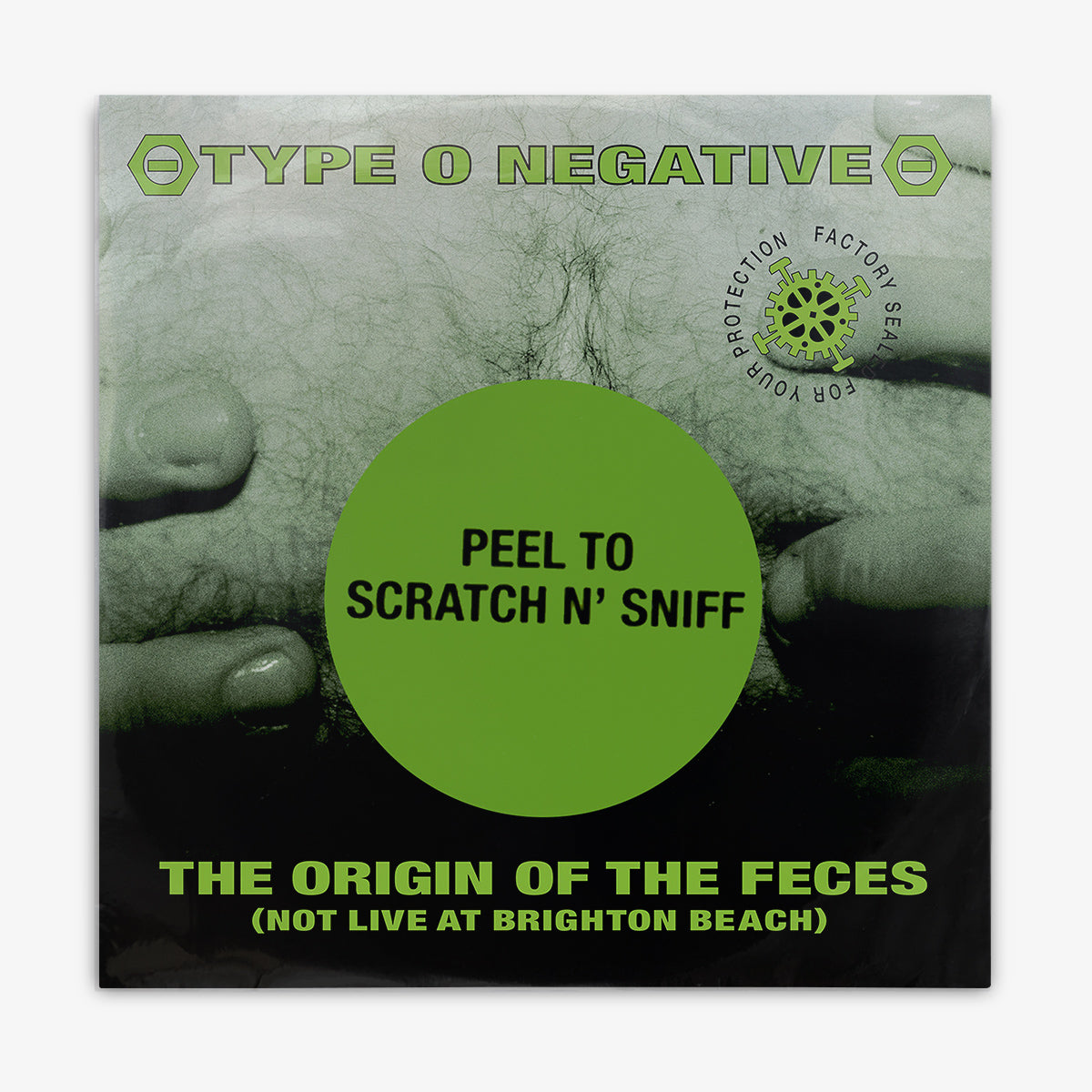 'The Origin of the Feces (Not Live at Brighton Beach)', the second album by Type O Negative, was recorded in the studio but layered with fake crowd noise, stage banter, and interruptions to mimic a chaotic live show. Originally released in 1992 with an infamously provocative cover featuring a close-up of an anus—allegedly belonging to frontman Peter Steele—it was later reissued with a black-and-green adaptation of the 1493 painting 'The Dance of Death'.